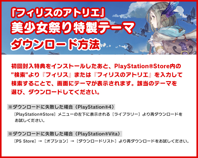 『フィリスのアトリエ』美少女祭り特製テーマのダウンロード方法についてはこちら