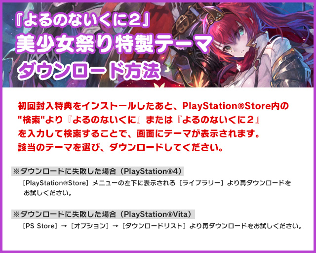 『よるのないくに2』美少女祭り特製テーマのダウンロード方法についてはこちら